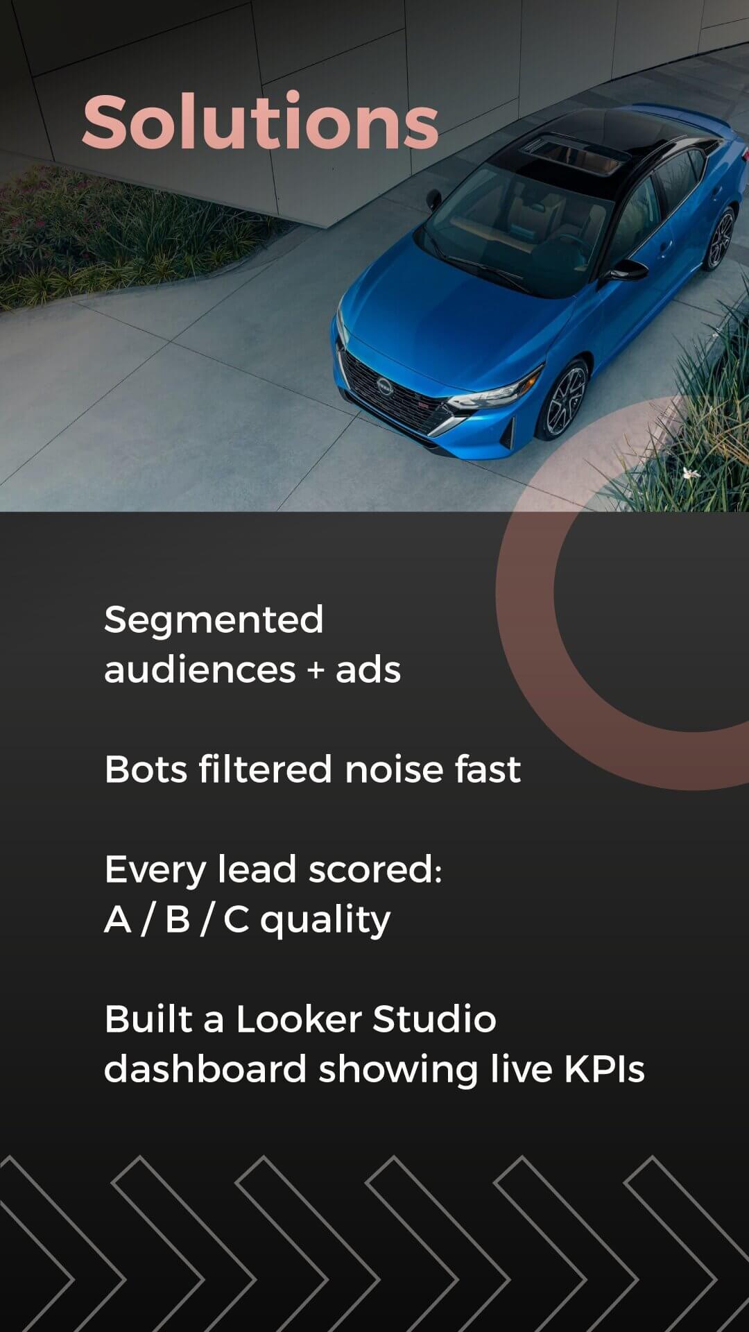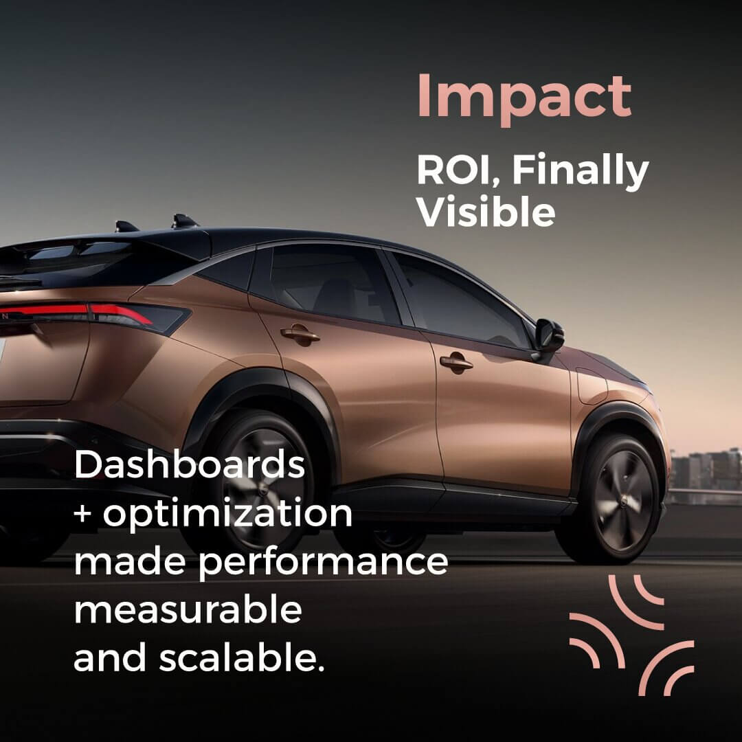 We partnered with a Nissan dealership group in Mexico, helping them achieve a 410% ROI while generating over 590 high-quality leads each month