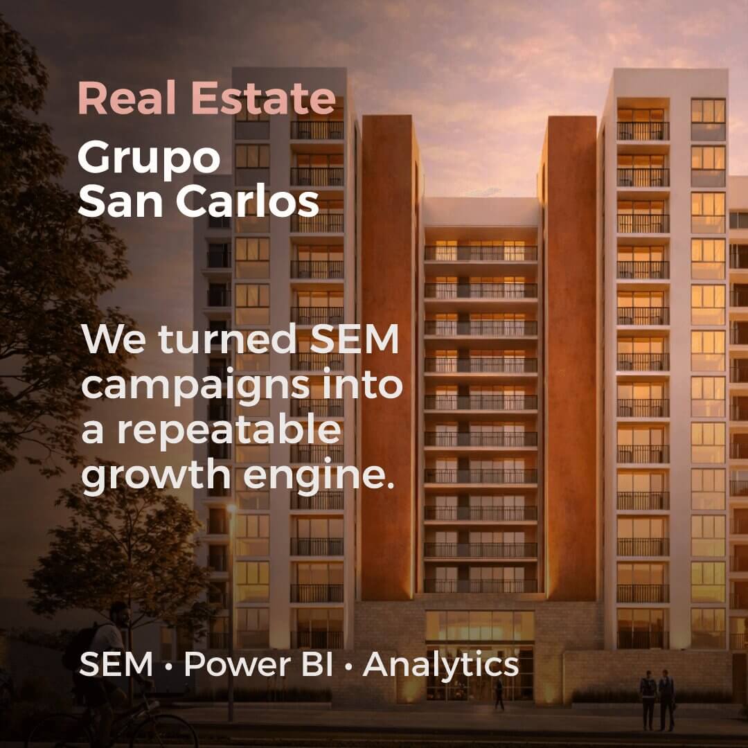 We support Grupo San Carlos—one of the region’s largest developers—in scaling their digital acquisition strategy through data, automation, and multi-channel performance marketing.